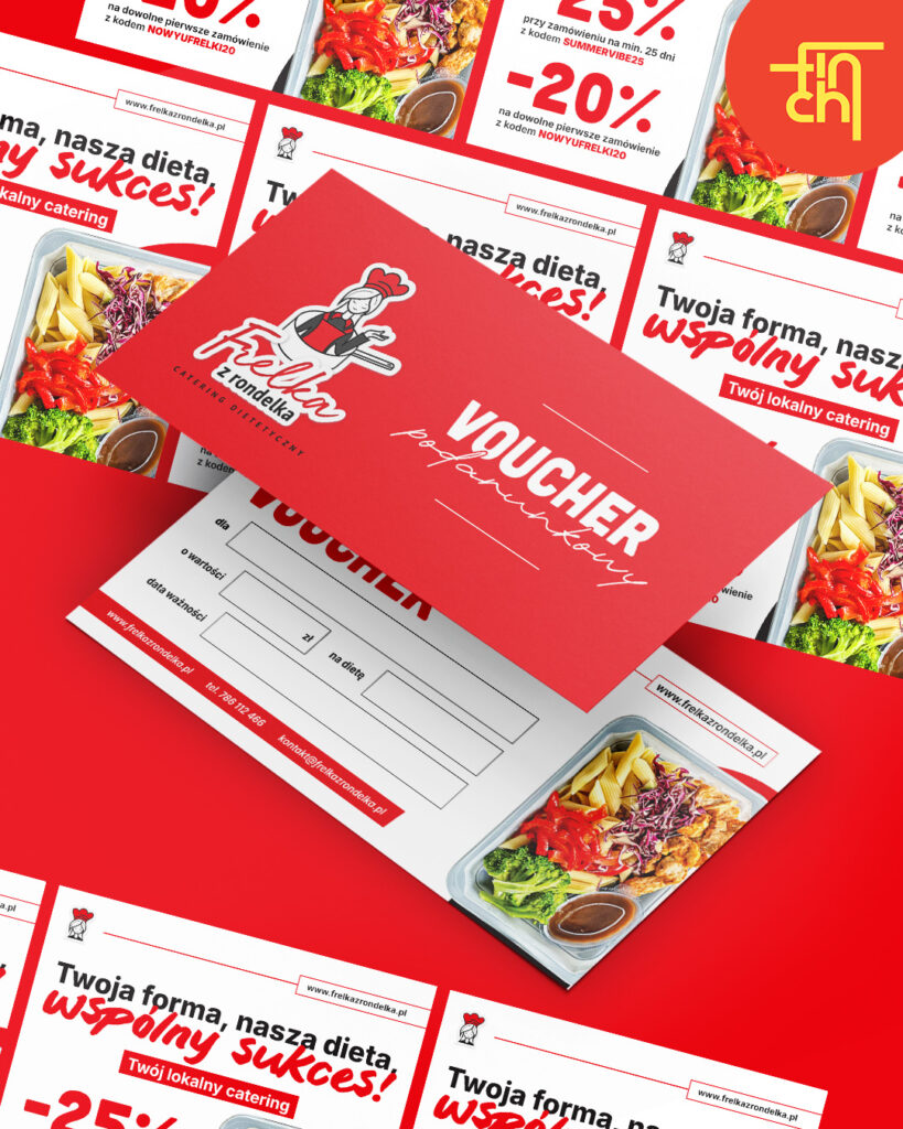 Celem projektu było przygotowanie atrakcyjnych materiałów wizualnych, które zwiększą rozpoznawalność marki Frelka z rondelka oraz zachęcą potencjalnych klientów do skorzystania z oferty cateringu dietetycznego. Grafiki do postów sponsorowanych miały przyciągać uwagę w social mediach, a vouchery podarunkowe — wspierać sprzedaż i budować pozytywny wizerunek marki.