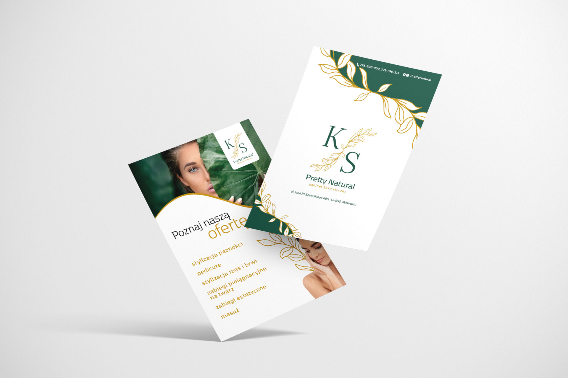 🔹 Stworzenie spójnych materiałów promocyjnych, takich jak wizytówki, ulotki czy cenniki.